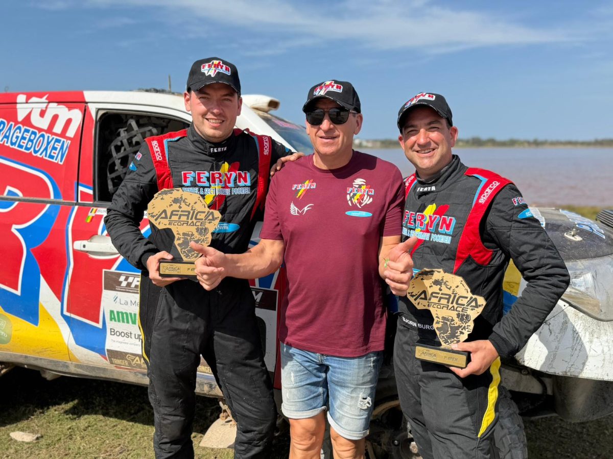 Blinkend van trots rijden Cédric Feryn en Bjorn Burgelman zaterdagnamiddag het podium op waar ze gelauwerd worden als winnaar van hun klasse. Aan de fout van het podium applaudisseert een apetrotse papa Pascal Feryn bijgestaan door een al even fiere boezemvriend Koen Wauters. Ze worden omringd door de rest van het team. Een luid applaus stijgt op wanneer Cédric en Bjorn de trofee in de lucht duwen. “Dit is een fantastisch gevoel”, zegt Cédric Feryn. “Ik ben blij en blik terug op een mooie rally. Het was bij momenten echt afzien, maar als je dan kan doorbijten dan maakt het momenten als deze extra mooi. Bjorn en ik hebben de voorbije twee weken zoveel meegemaakt. We hebben echt liggen kloten, liggen taffelen, vloeken en zoveel meer. In de duinen dachten we even aan opgeven en zei ik dat we er maar moesten mee stoppen. Maar we hebben toch nog eens geprobeerd, zijn eruit geraakt en bereikten het bivak. Het doorzetten en niet willen opgeven, dat gaat me het meeste bijblijven. Onze auto is zwaar, té zwaar voor de duinen. Maar oer en oersterk. Het is jammer van die elektronische problemen, want dat buiten beschouwing gelaten was de wagen top. Drie platte banden op twee weken, als je ziet waar wij gepasseerd zijn, dat is eigenlijk niets.”